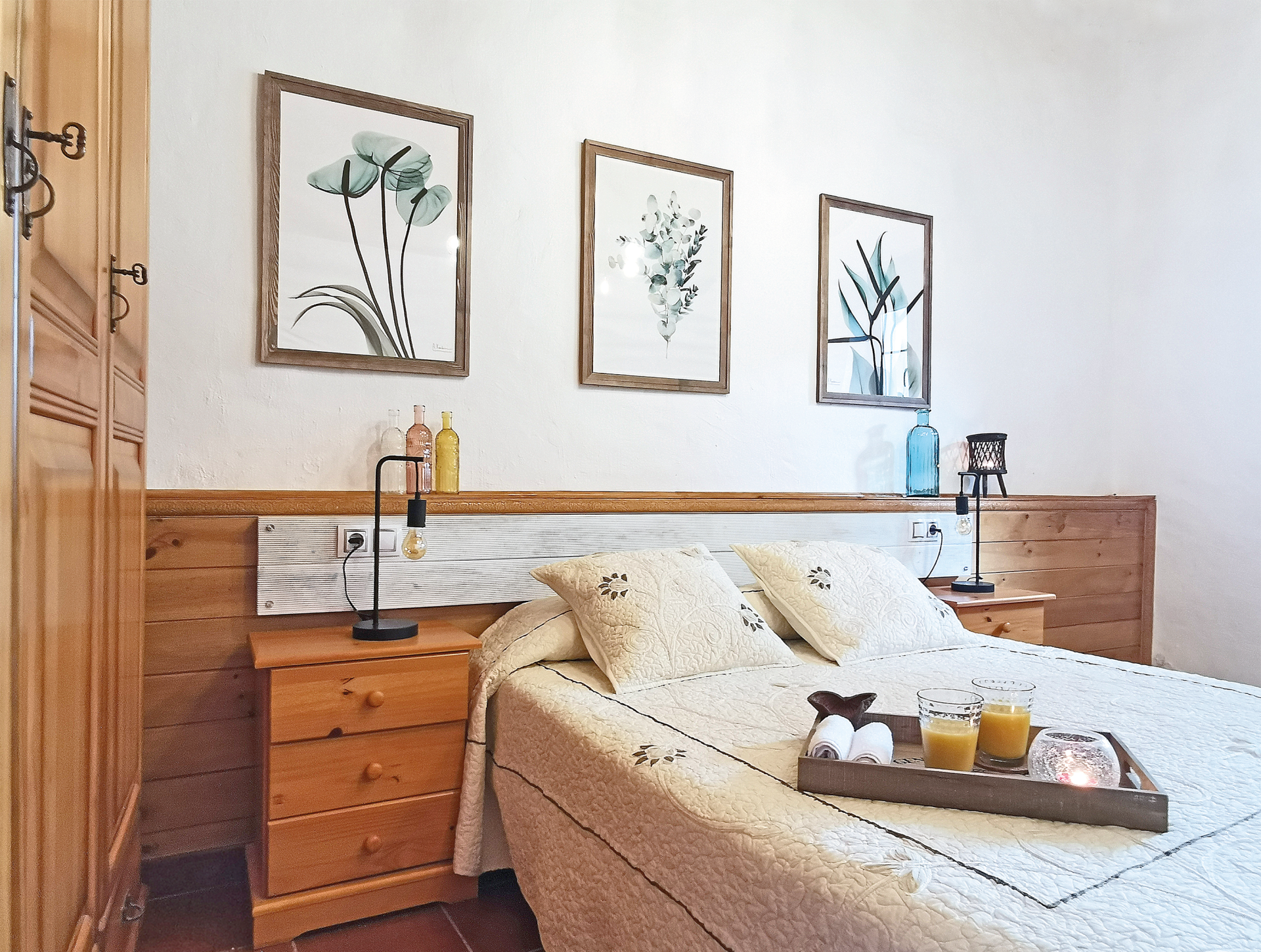 Las camas estarán preparadas con sábanas y colcha o edredón según epoca del año. Además dispondrán de un juego de toallas por huésped.